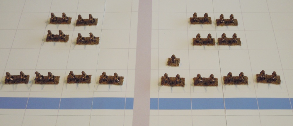 For the purposes of this battle the Strackenzian People's Militia were given a Battle Power of 4 and the Freikorps mortars were treated as if they were light field artillery.