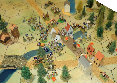 As for the battle report ... well to me it read very much like the story of a real battle, with the ebb and flow first favouring one side and then the other. An very informative introduction to the re-fight (which includes the ORBATs) can be read here, whilst the full battle report (including suggested rule changes) can be read here.