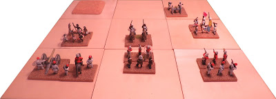 DeleteThat was my intention, and in the demo game I posted on the Portable Wargame Facebook page both the Persians and Romans had units in reserve, behind their baselines. It costs one movement point to move from the reserve to the baseline, and a unit that does so may enter any of the three baseline squares.