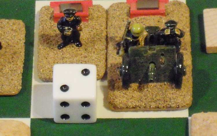 The playing card tiles were 'dealt' to all the Units engaged in the battle, but before they were turned over the Artillery Units on both sides opened fire. The Red Naval Artillery Unit fired at the White Infantry Unit directly in front of it, ...
